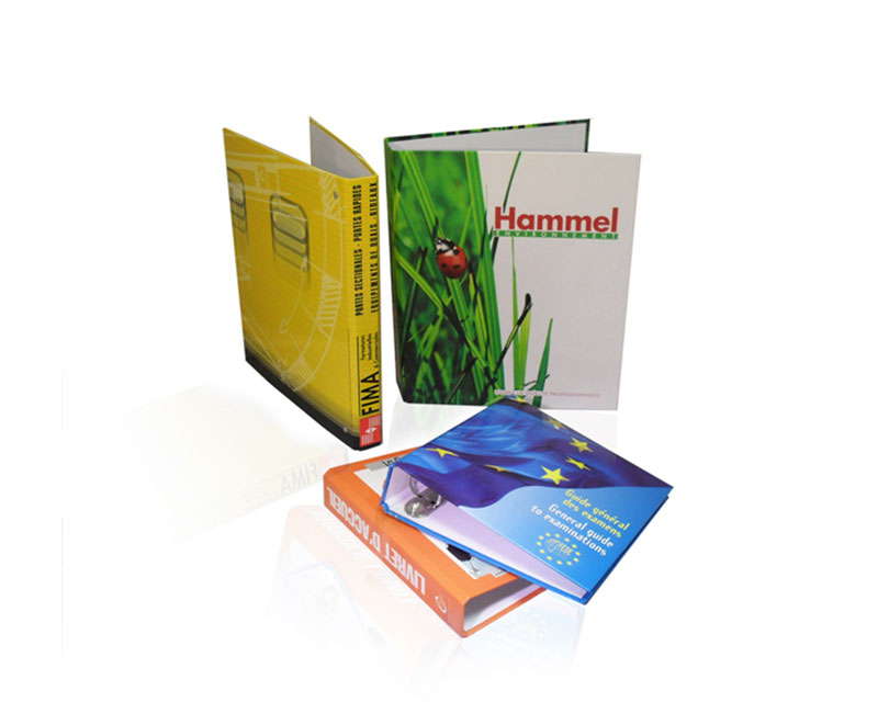 Impression sur carton compact de 1200 à 1800 gr ajoutez autant d’option que vous le souhaitez pour personnaliser entièrement votre classeur : coins métals, porte carte de visite adhésivé, porte stylo, intercalaires, poignées, pochette rapportée (comme dans l’exemple en photo) … à vous de décider.